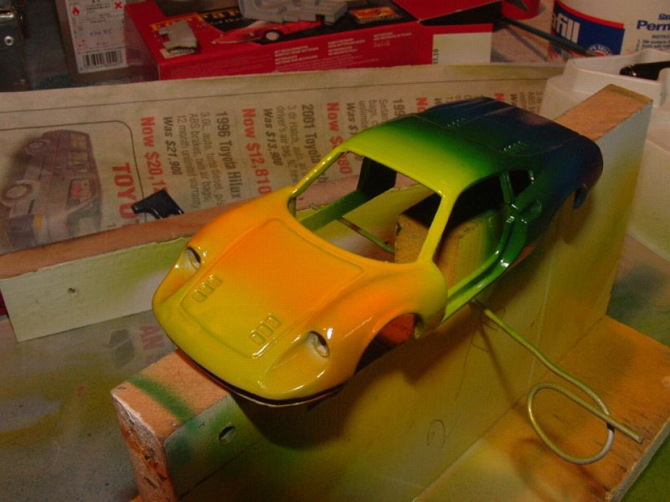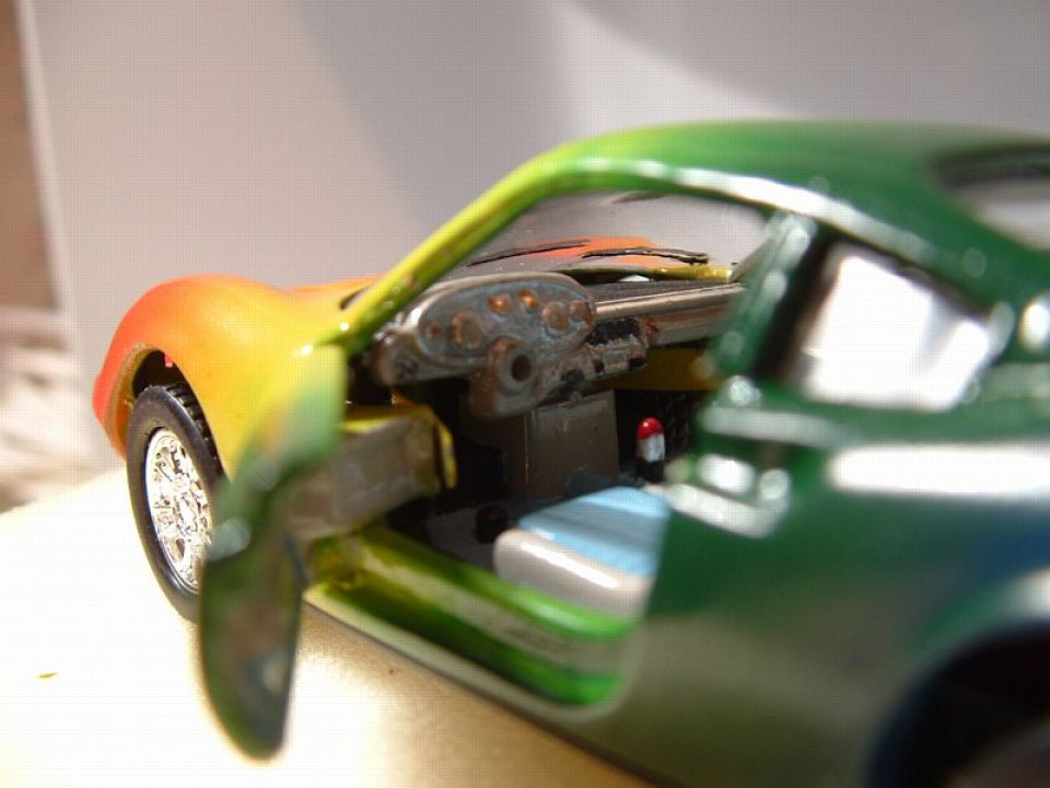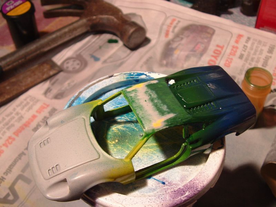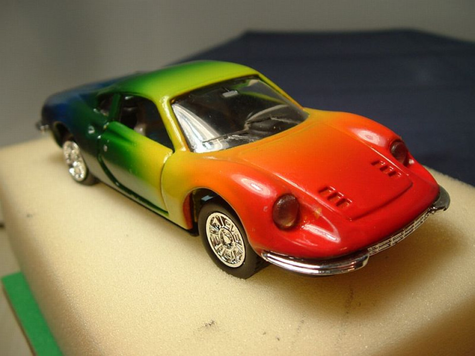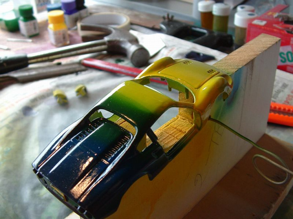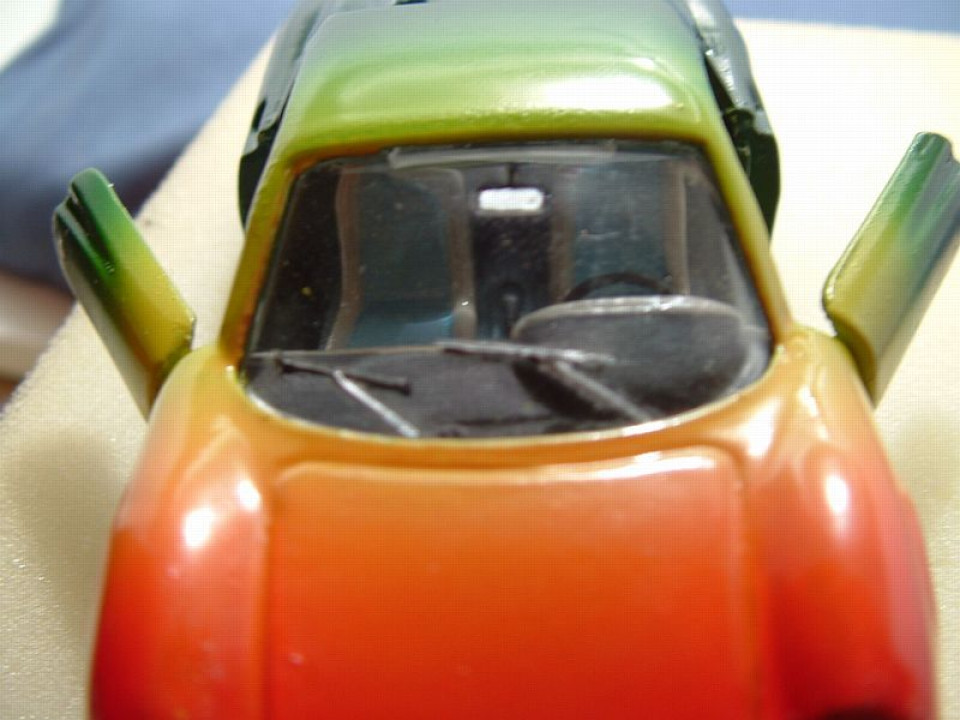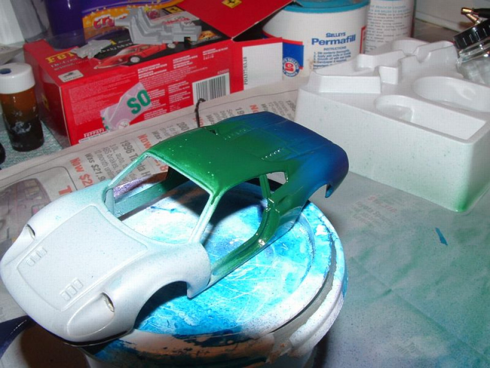 So now it was on to the real task - finish coats! Now at this point I want to stress that this was the first time EVER I had tried using a proper mini spray painter. Sure I've used cans before on bigger models, but here I was trying to spray a rainbow on a 1:43 scale car!
