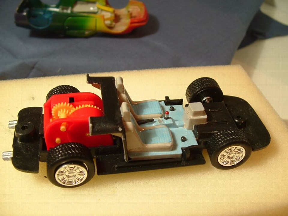 Next I positioned the dash, which simply push-fits into the front of the car, and turned my attention to the base plate, etc. The rear motor and axle have to be fitted first, followed by the front axle which is then held in place by the interior. It all seemed to fit together quickly and easily.